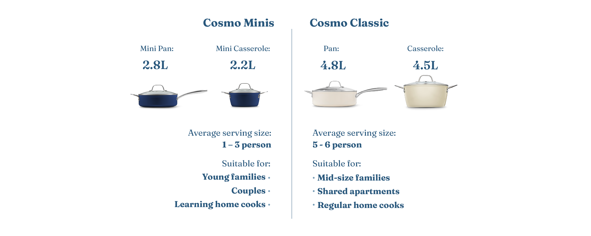 Non-toxic and made for all stovetops - we've packed all your favourite Cosmo features in a smaller pan for you to prepare modest and controlled portions as you stew, simmer, and boil liquids for your meals.